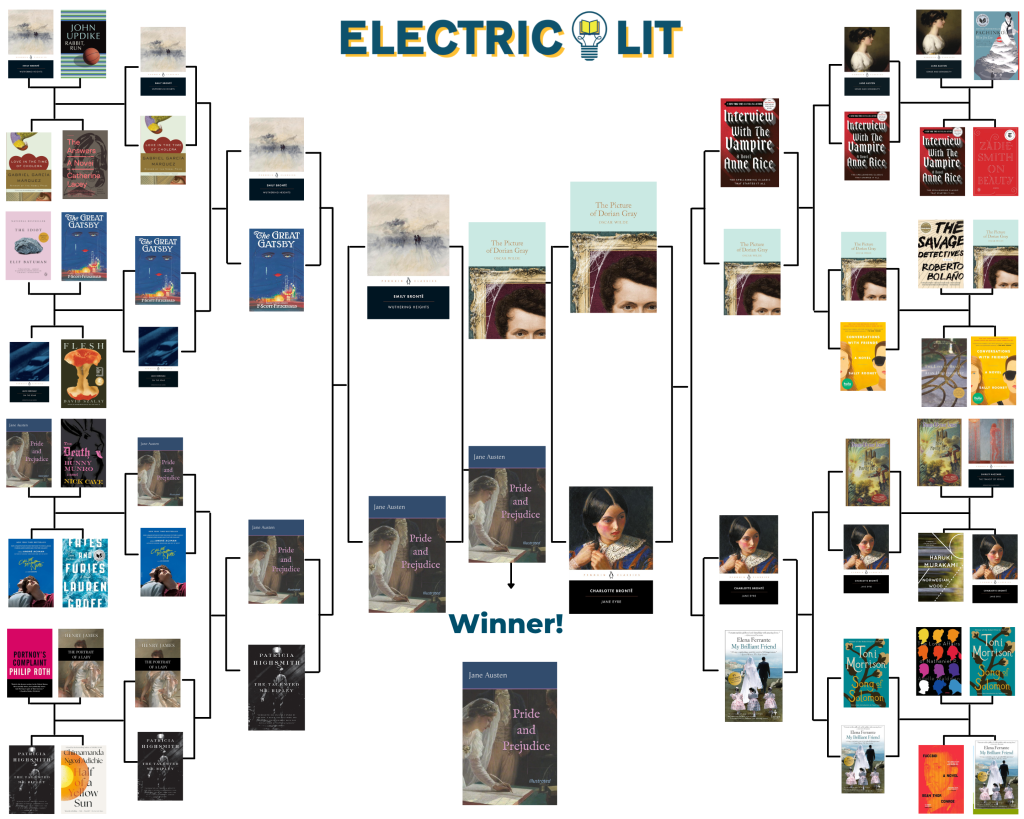 Either way, the Final Four ultimately brought us back to four defining figures of nineteenth-century cad lit: Heathcliff from Wuthering Heights by Emily Brontë, George Wickham from Pride and Prejudice by Jane Austen, Dorian Gray from The Picture of Dorian Gray by Oscar Wilde, and Edward Rochester from Jane Eyre by Charlotte Brontë. Along the way, there were a few close calls. Dorian Gray eked by Lestat de Lioncourt from Interview with the Vampire by Anne Rice by just 10 votes, and Edward Rochester managed to dispatch early favorite Nino Sarratore from Elena Ferrante’s Neapolitan Novels by 14 votes.